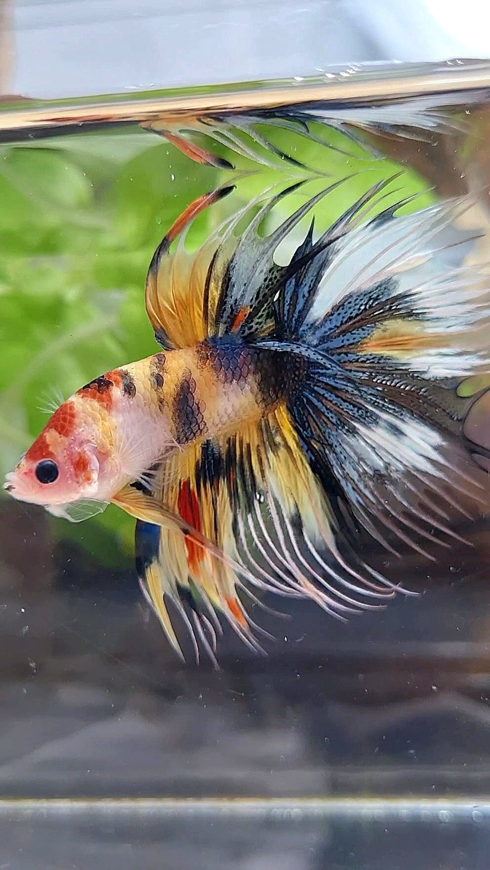 CROWNTAIL HALFMOON YELLOW KOI TIGER MULTICOLOR BETTA FISH