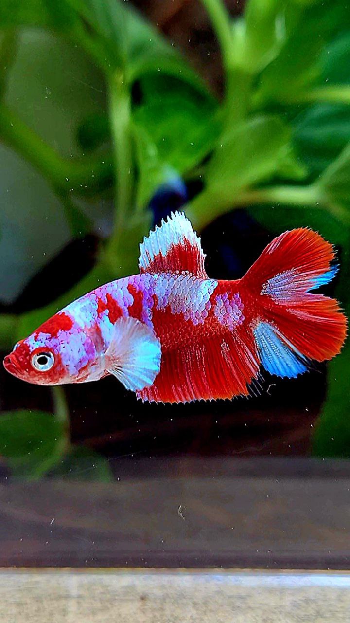 FEMALE HALFMOON DOUBLE TAIL BARONGSAI RED WHITE GALAXY MULTICOLOR BETTA FISH