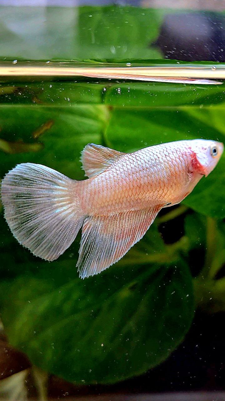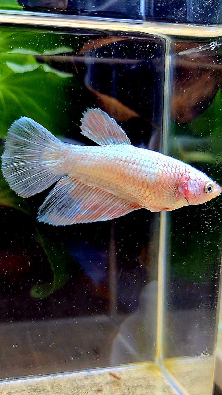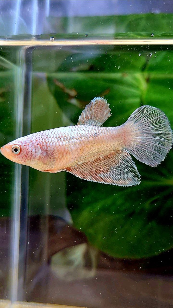 FEMALE HALFMOON WHITE FLAMINGGO COPPER RIM BETTA FISH