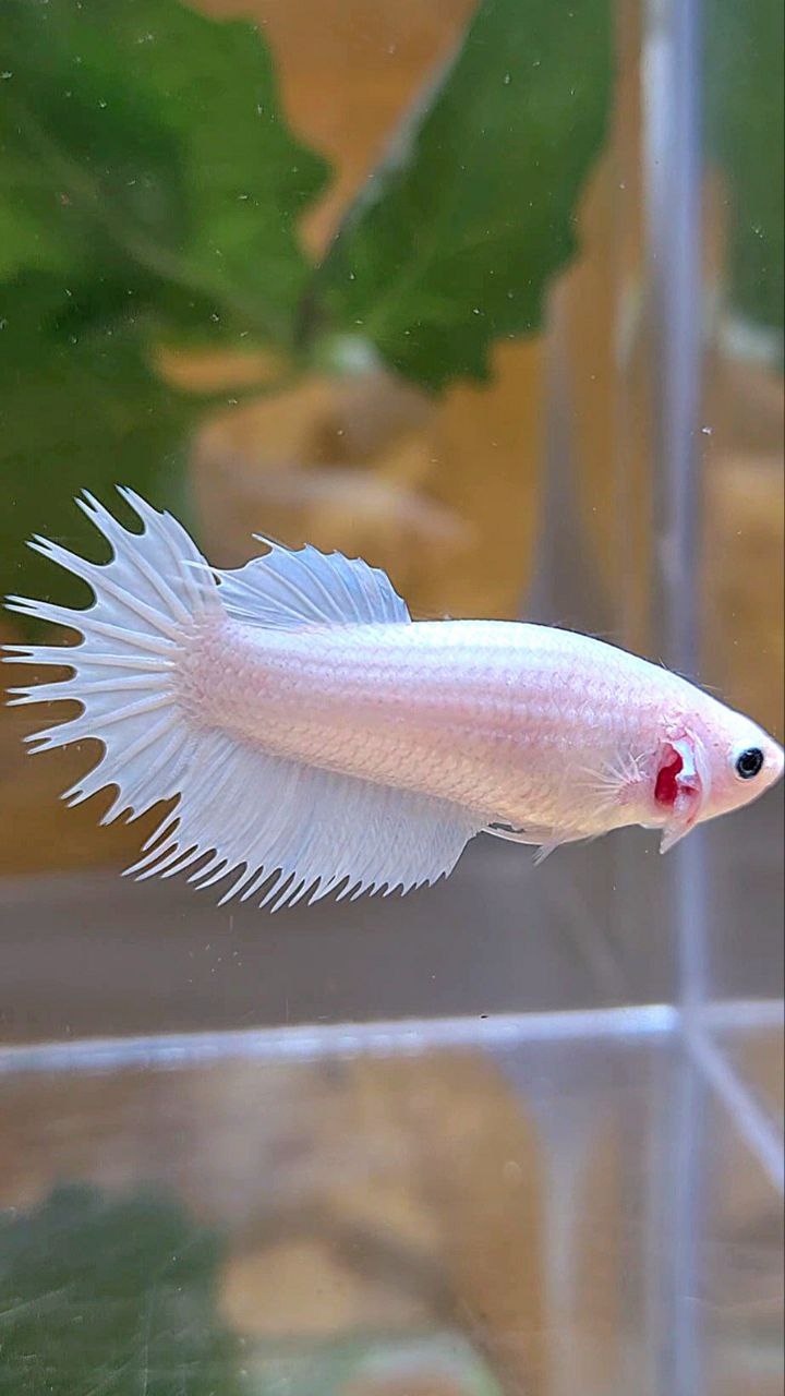 FEMALE CROWNTAIL PLAKAT WHITE PLATINUM SOLID BETTA FISH