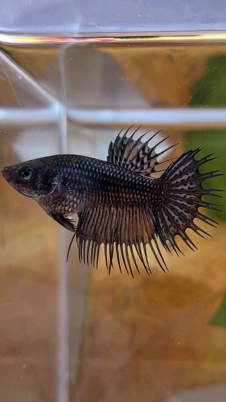 FEMALE KING CROWNTAIL BLACK COPPER BETTA FISH