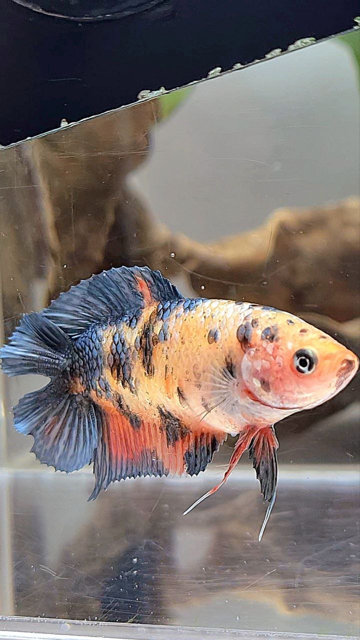 FEMALE PLAKAT DOUBLE TAIL BLACK DOTS COPPER ORANGE MULTICOLOR BETTA FISH