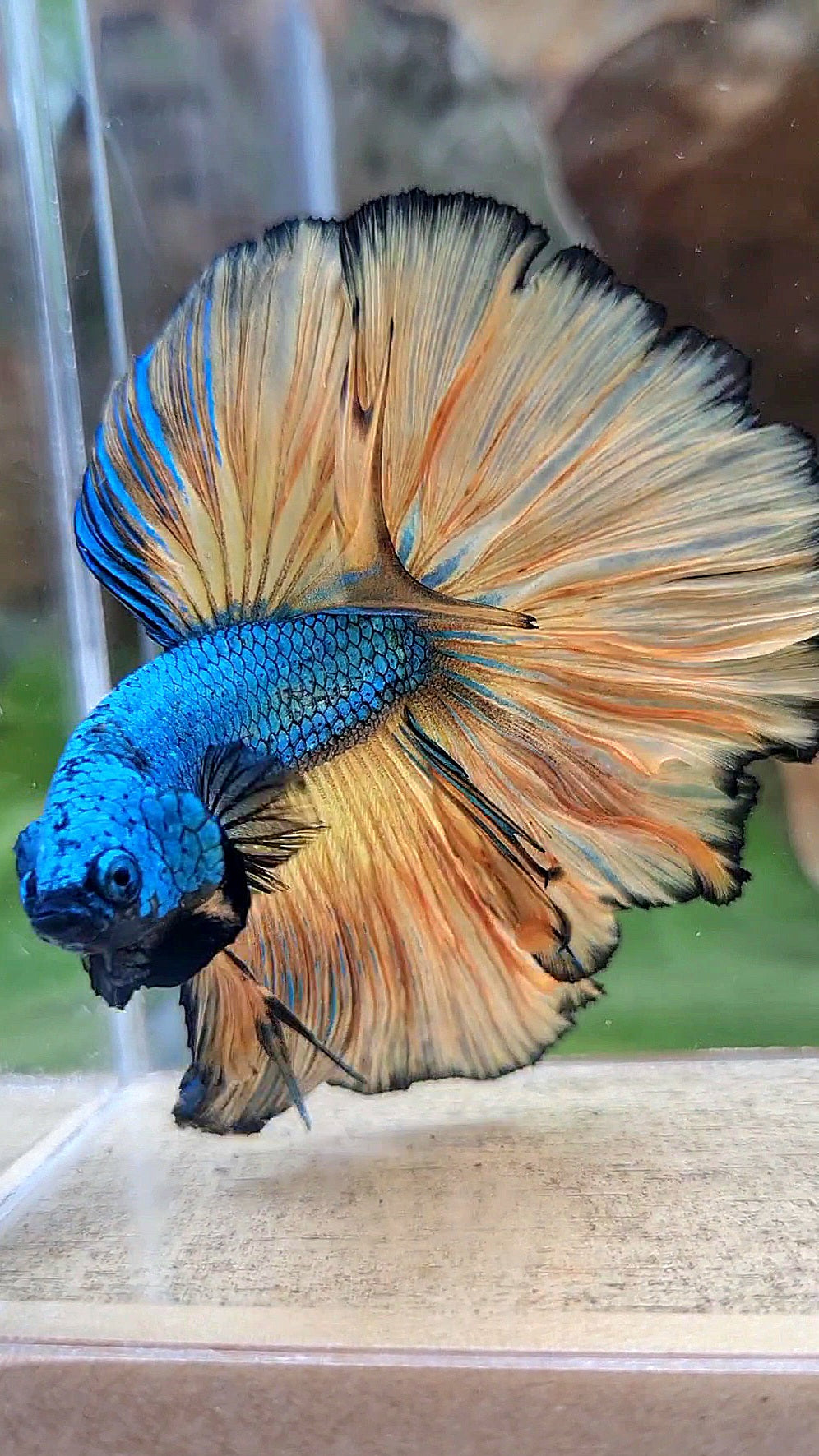 HALFMOON OVER ROSETAIL BLUE DRAGON YELLOW MUSTARD GAS BETTA FISH