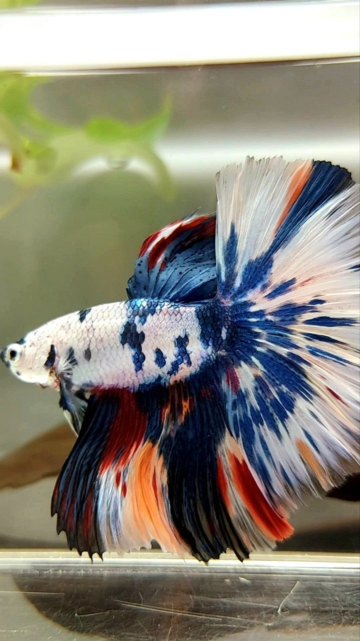 XL HALFMOON OVERTAIL ROSETAIL BLUE CANDY SNOW MULTICOLOR BETTA FISH