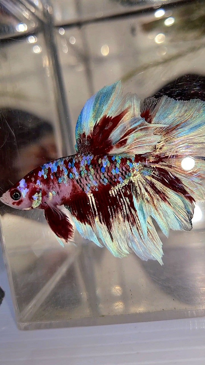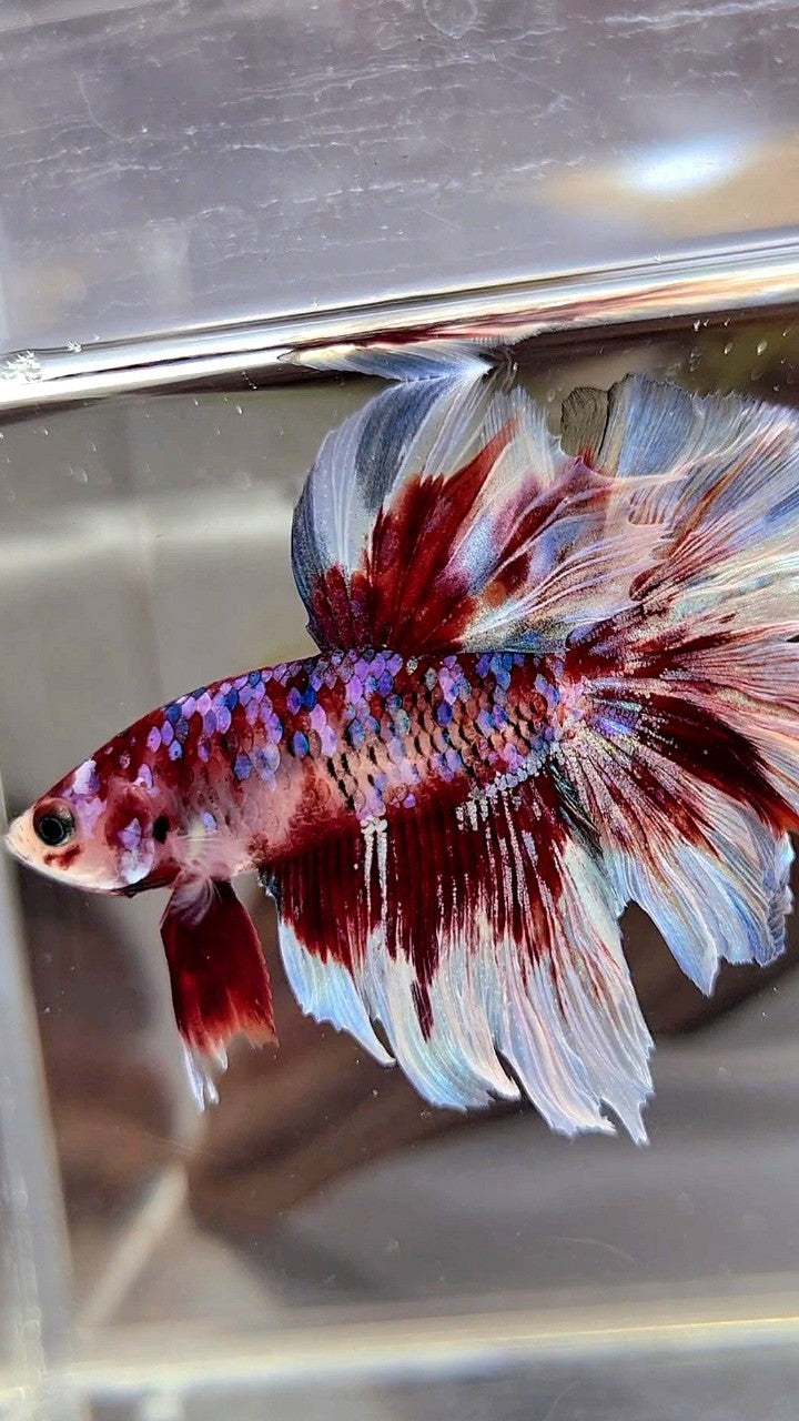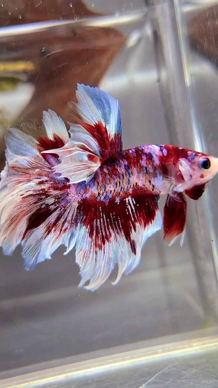 HALFMOON ROSETAIL BARONGSAI SUPER GALAXY WHITE RED BETTA FISH