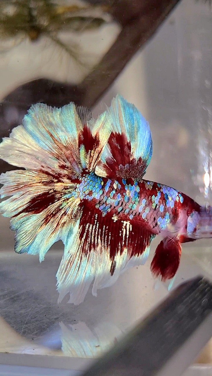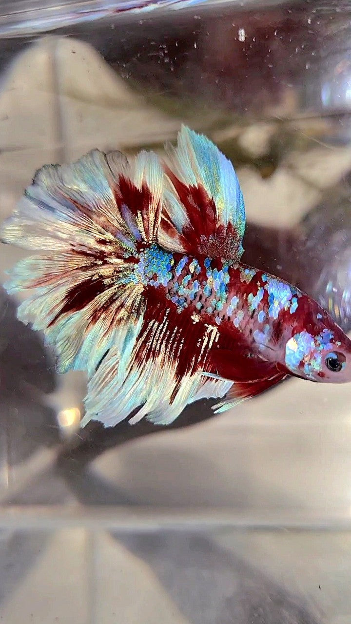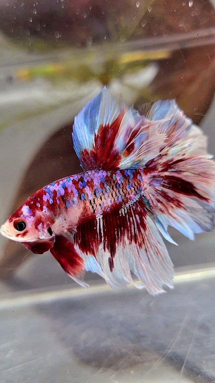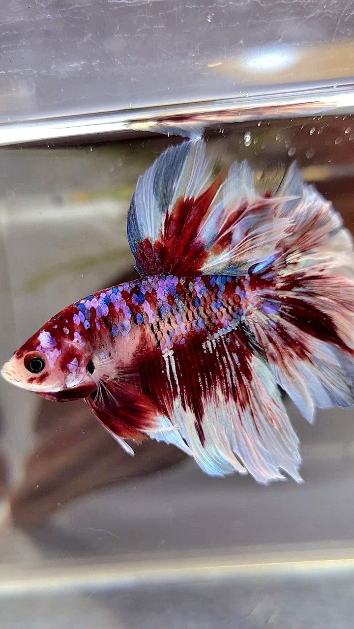 HALFMOON ROSETAIL BARONGSAI SUPER GALAXY WHITE RED BETTA FISH