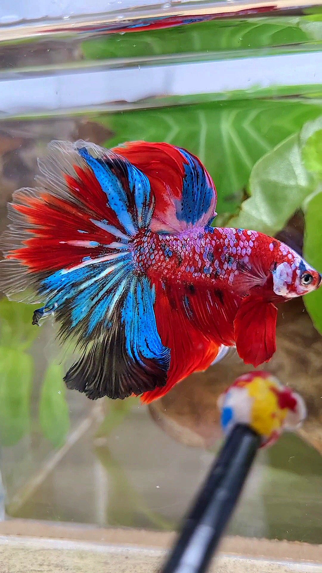 HALFMOON ROSETAIL CRESCENT TAIL RED GALAXY MULTICOLOR BETTA FISH